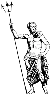 Poseidon (In Greek: Ποσειδῶν, known as Neptune to the Romans) was considered as the god of the sea. Born of Cronos and Rhea, he had Zeus and Pluto (Hades) for brothers. Poseidon also had three sisters: Hestia, Hera, and Demeter. When Zeus overthrew their father, and the three brothers divided the earth among them, Poseidon became the god of the sea and earthquakes.