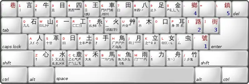 Dayi input method (大易輸入法 - Dà yì shūrù fǎ) is a Chinese shape based input method. Dayi method was created for traditional Chinese characters and many implementations doesn't support the simplified set of characters. This guide is invented to help English students learn Dayi. Authoritative information in chinese is available at www.dayi.com.