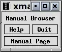 For example, a typical "xterm" window contains a scroll bar and the emulated screen of the terminal. The "xman" program, for viewing manual pages, contains three widgets of buttons on its tiny main screen. By using the "Manual Page" button, you obtain a larger window with several widgets: menu buttons, a scroll bar, and a text box containing the manual page.