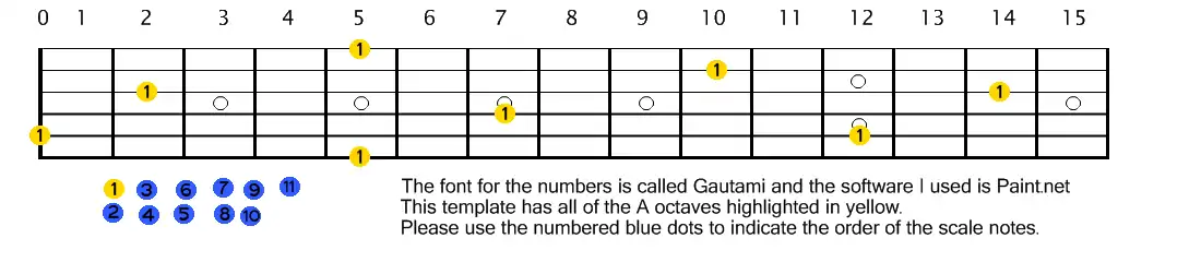 This template is intended for easy creating of scale and arpeggio charts. Please use the numbers provided to indicate notes.