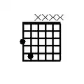 One common variation on the power chord involved omitting the second, higher octave note. For example, a G5 without the second G would look like this: