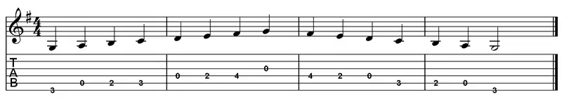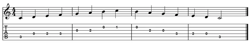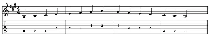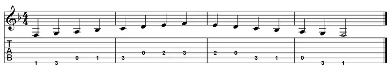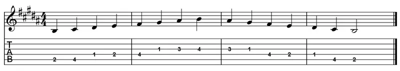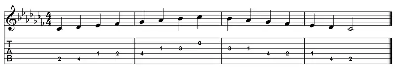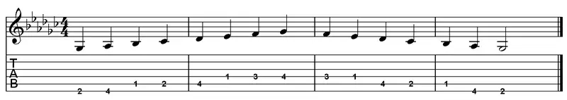 Anti-clockwise the root note of each scale forms the interval of a fourth with the root note of the following scale.
