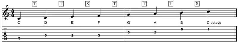 Major scale in the key of C