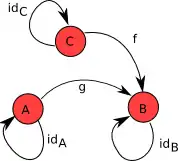 Lastly, given a category C there needs to be for every object A an identity morphism, that is an identity of composition with other morphisms. Put precisely, for every morphism :