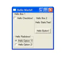 4. Use the boxed combinator to create a nice looking border around the four controls, and another one around the staticText and the button. (Note: the boxed combinator might not be working on MacOS X - you might get widgets that can't be interacted with. This is likely just a bug in wxhaskell.)