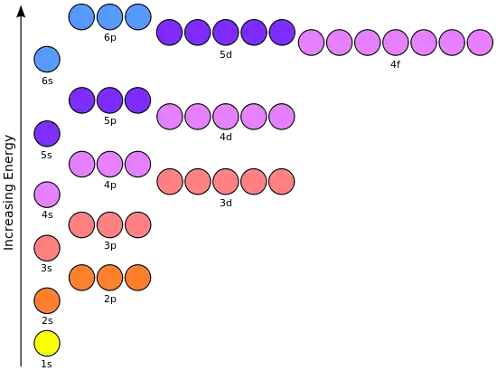 The diagram below represents the orbital representation diagram used in earlier chapters. The orbital representation diagram has a few different variations but all are used to draw electron configurations. Most show the orbitals in groups, as lines, boxes, or circles with each orbital having its own line (or circle) within each sublevel.