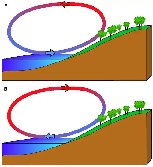 - A wind that blows from land to sea in winter when the ocean is warmer than the land.