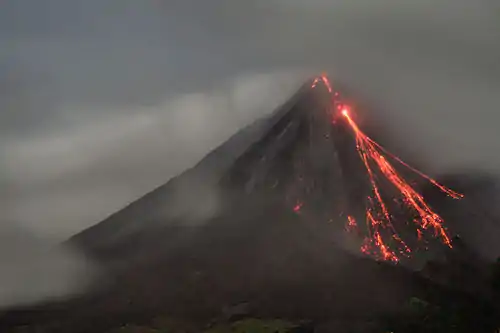 The early Earth was very different from our Earth today. The early Earth experienced frequent impacts from asteroids and meteorites and had much more frequent volcanic eruptions. There was no life on Earth for the first billion years because the atmosphere was not suitable for life. Earth’s first atmosphere had lots of water vapor but had almost no oxygen. Later, frequent volcanic eruptions put several different gases into the air (Figure 12.13). These gases created a new type of atmosphere for Earth. The volcanic eruptions spewed gases such as nitrogen, carbon dioxide, hydrogen, and water vapor into the atmosphere—but no free oxygen. Without oxygen, there was still very little that could live on Earth.