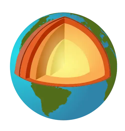 Today, the Earth consists of layers that represent different densities (Figure 12.12). Earth's center is called its core. The core is made of very dense metal elements called iron and nickel. The outermost layer of the Earth is its crust. The crust is made mostly of light elements such as silicon, oxygen, and aluminum. More information on the different layers of the Earth is presented in the lesson on plate tectonics.
