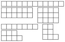 We do not distinguish between 2×6 and 6×2 because they are essentially equivalent arrangements.