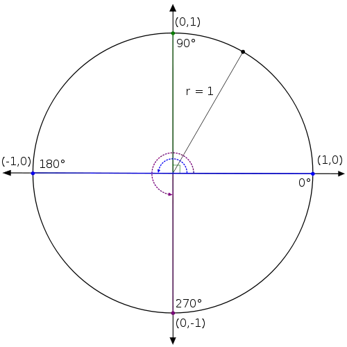 - The terminal side of the angle 270° intersects the unit circle at (0, −1). Use this ordered pair to find the six trig functions of 270°.