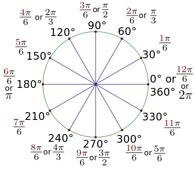| Figure 2.6: 30-degree reference angle radian measure through one rotation. |
