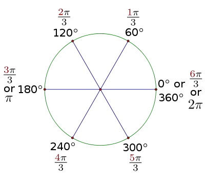 | Figure 2.5: 60-degree reference angle radian measure through one rotation. |