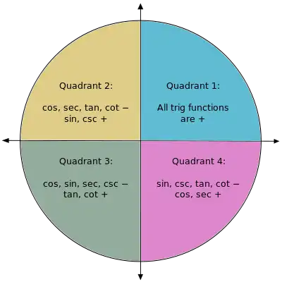 • State the sign of a trig function, given the quadrant in which an angle lies.