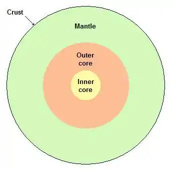 The Earth can be divided by composition into the crust, mantle, and core, as shown to scale in the diagram to the right.