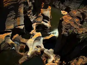 In general, it is easy to look at a surface where two sediments meet and determine which of the two sedimentary rocks was eroded, and which was laid down over the eroded surface. If, for example, potholes formed by a river or glacier are subsequently filled up with mud, it is not difficult to conclude that the mud conformed itself to the potholes rather than the potholes to the mud, and that consequently the potholes indicate the lower surface.