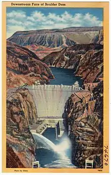 The construction of the dam was important for Nevada, as it uplifted the economy during the Great Depression. In 1930, 6.7% of the working class in Nevada was unemployed, and since the Hoover Dam was to be built at the border of Nevada and Arizona, it allowed for hiring of many unemployed individuals in both states. Work at the construction site involved many long hours working in sweltering heat wherein many workers lost their lives. However, for those who were able to secure a job at the construction site were able to earn a living and created a chance for many young men to start a family. As a result of this phenomenon, the population of Nevada grew following the dam’s construction as many people settled in Boulder City, which was near the growing metropolis of Las Vegas. As this city continued to grow, it required a large amount of energy as many new technologies depended upon electrical power, including the iconic neon signs of Las Vegas, the hydroelectric power produced by Hoover Dam was enough to not only supply Las Vegas with sufficient power but also Arizona and California with their respective blooming cities. Not only would the dam provide electricity to these areas, but a lot a sustainable source of fresh water that could be pumped hundreds of miles. A 1931 New York Times article described the dam to be capable of diverting enough water and electricity to support 5,000,000 new residents in the Southwest. All South-western residents, new and old, felt the magnitude of impact of the construction of the Hoover Dam, as it brought essential commodities to the area. All this growth within the state of Nevada during construction reinvigorated a stricken economy, which allowed for strengthened spirits and hope in The New Deal.