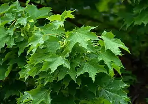 Acer platanoides (Norway Maple) is a species of maple native to eastern and central Europe and southwest Asia, from France east to Russia, north to southern Scandinavia and southeast to northern Iran.[1][2] It is widely cultivated elsewhere, and is also an invasive in some areas.[3]