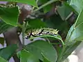 A Swallowtail caterpillar on a branch of keffir lime tree