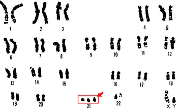 - A) a chromosome abnormality on chromosome 21
