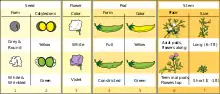 In cross pollinating two true-breeding plants, for example one that came from a long line of yellow peas and the other that came from a long line of green peas, the first generation of offspring always came out with all yellow peas. The following generations had a ratio of 3:1 yellow to green. In this and in all of the other pea plant traits Mendel observed, one form was dominant over another so it masked the presence of the other allele. Even if the phenotype (presence) is covered up, the genotype (allele) can be passed on to other generations.