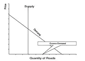 - In most countries, roads are available free of charge and people will use them out to the point where demand intersects the horizontal axis leading to excess demand