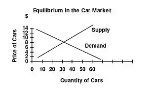 - Only at a price of $8,000 (in diagram at right) does quantity demanded equal quantity supplied
