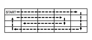 To the right is an illustration of an algorithm called a clockwise spiral path (Gardner, 1972) [4]. To decrypt a message using this algorithm, put the groups of letters in the message in the columns of the 4 X 5 matrix. Then follow the arrows to read the message.