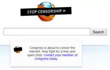 Opponents say that it violates the First Amendment,[6] is Internet censorship,[7] will cripple the Internet,[8] and will threaten whistle-blowing and other free speech actions.[6][9] Opponents have initiated a number of protest actions, including petition drives, boycotts of companies that support the legislation, and planned service blackouts by major Internet companies scheduled to coincide with the next Congressional hearing on the matter, such as the 2012 Wikipedia blackout on January 18, 2012.
