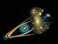 Einstein's theory of General Relativity makes several specific predictions about the observable structure of space-time, such as a prediction that light bends in a gravitational field and that the amount of bending depends in a precise way on the strength of that gravitational field. Arthur Eddington's observations made during a 1919 solar eclipse supported General Relativity rather than Newtonian gravitation.