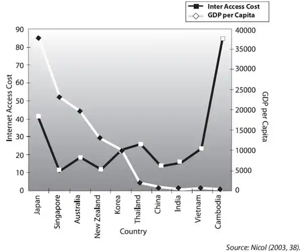 Figure 3: Internet costs and GDP/capita (monthly basis)