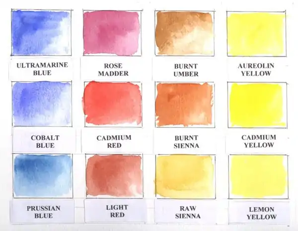 There are many colours to choose from, but a typical palette of twelve colours would look like this.