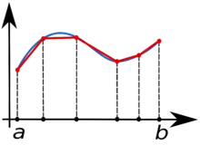The trapezoidal rule belongs to a class of formulas called Newton–Cotes formulas (evaluating the integrand at equally spaced points). Another way to look at it is that trapezoidal rule approximates the integrand by a first order polynomial and then integrating the polynomial over interval of integration as illustrated in the figure.