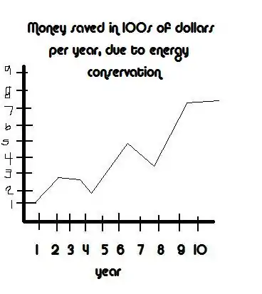 According to the graph above, how many dollars were saved in the 5th year of energy conservation? a. 100 b. 300 c. 450