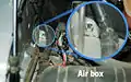 Once you have the kick panel removed, grab the edge of the carpet and pull toward the brake pedal. This will allow you to see the sound insulation on the inside of the firewall. You can see where this insulation fits around the main wiring harness (Fig 2). Take note of the bolt coming thru the small plastic fitting. This bolt will help you locate the firewall plug later.