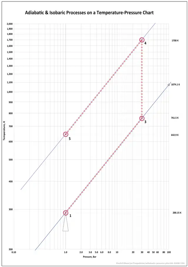 An adiabatic process is a thermodynamic process in which no heat is transferred to or from the working fluid. In an ideal gas turbine (Brayton cycle) the compression and expansion processes are adiabatic. We define θ as the pressure ratio in a process relating to the ambient conditions: