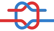 The square knot aka reef knot is a common and simple binding knot.