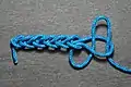 One of the features of the daisy chain (AKA chain sinnet) is that it can be untied by pulling the end out of the last loop and pulling on it, which will pull out every subsequent bight.