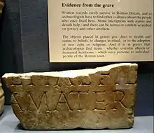 Give the meaning of the complete word on this inscription fragment from Roman Britainː