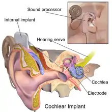 - ↑ Martin, D. (2012, December 15). Dr. William F. House, Inventor of Pioneering Ear-Implant Device, Dies at 89. The New York Times. http://www.nytimes.com/2012/12/16/health/dr-william-f-house-inventor-of-cochlear-implant-dies.html