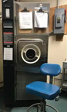 Operating with no record in log; ask user to update log. Alarm; press reset. If chamber fails to cool, shut off steam supply. Correct the problem and start cycle again. Door mechanism is stuck; press center hub in. Door will not open; look for loose screw on lower edge of the outer cover of the door. Door will not close; look for loose screw on lower edge of the outer cover of the door. Leakage of steam; report to Jen or Peter. Water splashing out of settling tank, probably from flushing at too high a pressure; skip the flush when pressure exceeds 20 psi.