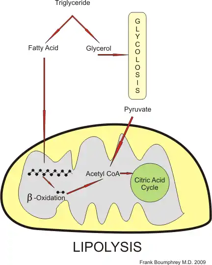 Fatty Acids can be metabolized in almost all cells of the body, the notable exception are brain cells, to produce ATP from ADP. They are broken down by a process called beta-oxidation to produce two carbon units which are then fed into the Citric Acid Cycle via Acetyl CoA.
