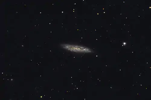 Messier 108 (also known as NGC 3556) is an edge-on w:spiral galaxy in the w:constellation Ursa Major. It was discovered by w:Pierre Méchain in 1781 or 1782.[4]