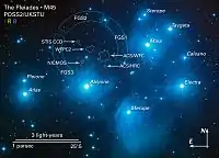- 1 2 3 4 "SIMBAD Astronomical Database". Results for M45. http://simbad.u-strasbg.fr/Simbad. Retrieved 2007-04-20.