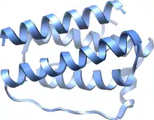 The hormone is transduced by the JAK-STAT system which is also the mechanism used by interferon and growth factors. When leptin reaches the arcuate nucleus, it binds two leptin receptor monomers in the extracellular domain and dimerizes them. Both monomers are then phosphorylated on a tyrosine residue of the intracellular domain by a Janus kinase (JAK). The phosphorylated tyrosine resides become docking sitse for three proteins that are signal transducers and activators of transcription (STATS 3, 5, and 6, a.k.a. fat-STATS). These docked STATS are then phosphorylated on Tyr residues by the same JAK. Afterwards, the STATS dimerize and move to the nucleus where they will bind to specific DNA sequences to stimulate transcription of genes such as pro-opiomelanocortin (POMC), which is the precursor to a-MSH.