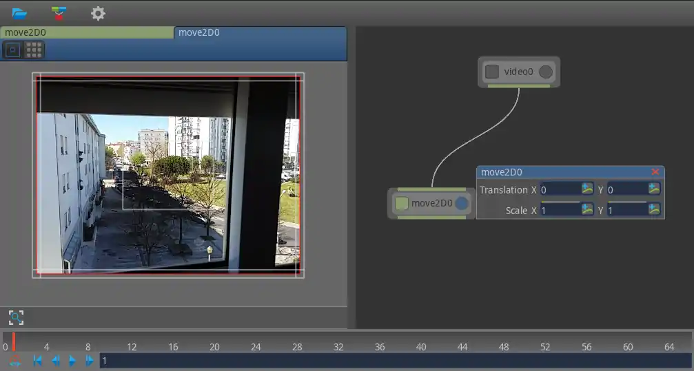 For some nodes enabling the node parameters not only opens the parameters window, it can also show an extra toolbar in the output window. An example of this is the move2D node.