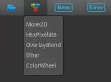 The parameter input box has two buttons, the first button is a single color button. The color is the color of the curve as seen in the curve editor. Clicking on it will show a drop down list of all available curves. This allows to choose a different curve to be associated with the parameter.
