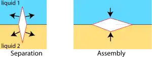 The interfaces give rise to a surface tension that rules the dynamics of this interface.