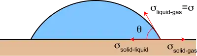 • the solid-gas interface, of surface tension