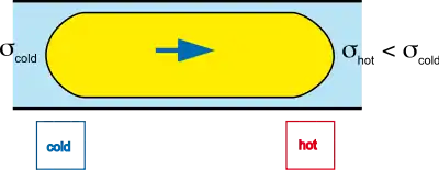 A long drop or bubble with a side hotter than the other will move towards the hotter places to reduce the total energy.